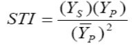 YS and YP are stress and optimal yield of a given genotype, respectively. Y`P and Y`S are average yield of all genotypes under optimal and stress conditions, respectively.