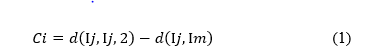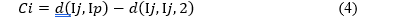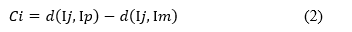 Unlike in (1),Ci here can be positive or negative, depending on wether Ij is more similar to Im or to Ip