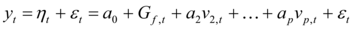 Let Gf,t = 0 and vi,t = 0 for all i in Eq. (9) except for one value of i = j, i.e., vi = vj ≠ 0, for one value of i, i = 2, …, p. Thus, with only one input variable vi = vj, Eq. (9) becomes a simple linear regression model (SLRM). To distinguish this SLM from Eq. (9), the fitted form is written as