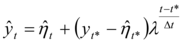 The final refinement involves the use of lancet glucose to help to reduce model bias. Since these measurements are infrequent and are not measured at a constant rate, it is not possible to build a correction model based on the correlation of residuals. The correction equation that we use comes from Rollins et al. 16 where only the most recent measurement, at t = t*, is used. This equation, which represents the proposed virtual sensor, is given as: