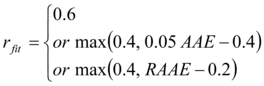 Since the degree of usefulness increases with y,ŷ, the goal is to obtain the largest (as close to the upper limit of 1) value as possible. Due to the highly complex mapping of the parameters into the response space of rfit, the following indirect criterion is used in obtaining the parameter estimates as described in Rollins et al. 16.
