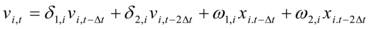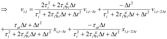 such that w2,i. = 1 - d1,i - d2,i - w1,i . This constraint is used to impose a unity gain restriction for the linear dynamic blocks. Δt is the sampling time for the inputs. In the Laplace domain, the linear dynamic functions are
