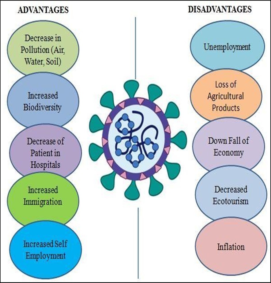 A worldwide lockdown has brought a number of changes in the environment. After few weeks of the lockdown a sudden fall in air and water pollution was observed. More rainy and storm weather was experienced even in the summer in India. According to a study conducted by Stanford University's School of Earth, Energy & Environmental Sciences, increasing deforest ation could contribute to an increase in the risk of diseases like COVID-19.They reported that utilization of forest for agricultural, industrial and urbanization purposes increases the occurrence of zoonotic transmission, or animal-to-human diseases accordingly. COVID-19 is caused by the SARS-CoV-2 virus, which is assumed to have originated in animals. Viruses that pass from animals to humans, like as the one that causes COVID-19, will likely grow more widespread as people continue to convert natural environments into agricultural land and industrial uses, according to a Stanford University analysis. The loss of tropical forests in Uganda increases chances of risk to direct interactions with wild animals and the micro organisms (bacteria, viruses, fungi) they carry (Bloomfield et al. 2020). This review enlights in both detrimental and beneficial consequences of covid-19 on environment health and its future prospects.