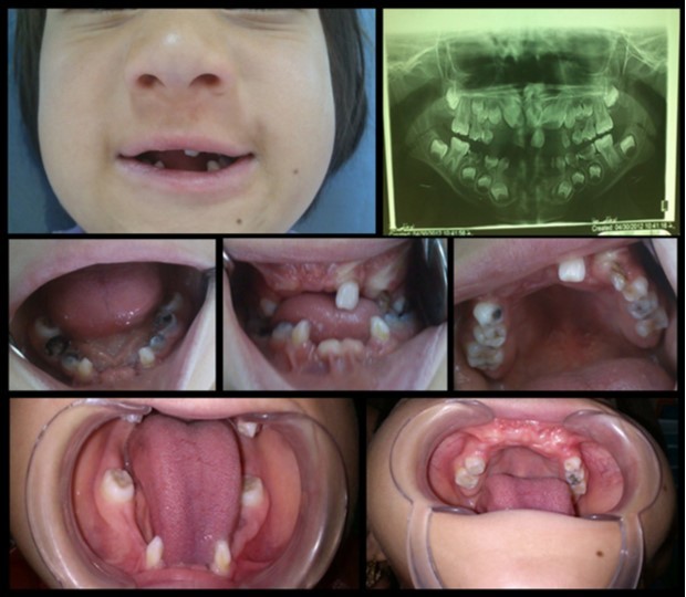 Due to the loss of a number of teeth, patients need some facilities to restore function and beauty during growing up, including acrylic partial anterior denture to keep the dental space and improve chewing, beauty, and speech 6, 5. When patients grow up, they need implants and prosthesis replacement. Malocclusion is common and orthodontic treatment may be necessary (5 and 6).