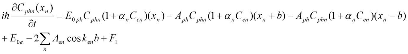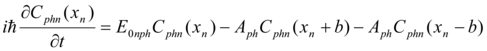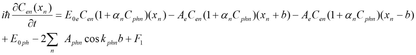 So for a full description of an electric current it is necessary to take into account a process of interaction between electrons and phonons (it is not only scattering but a resonant interaction as well). Such interaction has to result in appearance of a product . In other words to describe the dynamics of the electron and phonon amplitudes and interaction process one has to reduce the equations similar to (1) to describe the phonon dynamics in one dimensional crystalline lattice and then to couple the electron and phonon equations.