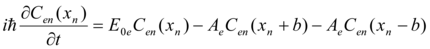 Where n -is the number of atoms in a crystallyne lattice, - is the amplitude of probability that the electron is near the n th atom, - is the energy that would have had the electron if it could not propagate along the chain of atoms in a lattice, -is the constant, b – is the distance between the neighboring atoms, x -is the coordinate.