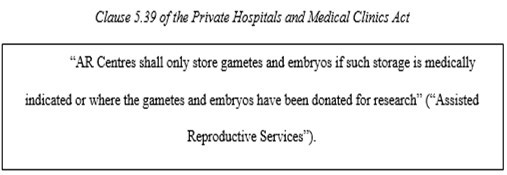 1. 2. (1986) Assisted Reproductive Services, Clause 5.39.”Private Hospitals and Medical Clinics Act (Chapter 248), Government Printer.