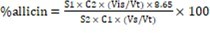 Number Sample Area under the peak (sample) Area under the peak (internal standard) Allicin content (%)