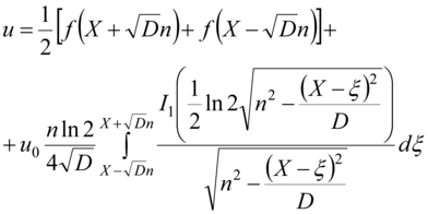 where f there is any function of coordinates x+√Dn and x-√Dn, ξ variable of integration, I1(z)- modified Bessel function of the first order.