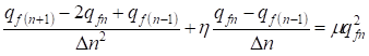 The found equation is the nonlinear differential equation of the second order with square-law nonlinearity. qf = f (ς) We shall search the solution of the equation (31) as a traveling wave ς = kX - ωn (where In this case the equation (31) will be transformed to the kind: