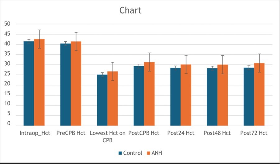 Patient characteristics, intraoperative variables, laboratory results, and clinical outcomes were summarized overall in Table 1, Table 2, Table 3 and by study group (ANH vs control) using means and standard deviations for continuous variables and frequencies with percentages for categorical variables. Comparisons between groups were conducted using independent-sample t-tests for continuous variables and chi-square tests for categorical variables. For transfusion-related outcomes (e.g., perioperative and intraoperative pRBCs, platelets, FFP, cryoprecipitate), which exhibited skewed distributions, log transformation was applied prior to conducting group comparisons with t-tests. Additional comparisons for secondary outcomes, such as ICU and hospital length of stay, were also assessed using t-tests. All analyses were conducted using SPSS version 28 (IBM Corp., Armonk, NY) and R version 4.1.0 (R Foundation for Statistical Computing, Vienna, Austria). All tests were two-tailed, and p-values < 0.05 were considered statistically significant.