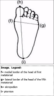 Anthropometry is the measurement of the body dimensions such as the length, the width, and the height for the purpose of understanding human physical variations and plays an important role in ergonomics, clothing designing, prosthetics, plastic surgery, and industrial designs, where statistical data about the distribution of the body dimensions in the population are used to optimize product. Appropriate use of anthropometry in design may improve well-being, health, comfort, and safety 1, 2. Identification is often required in medico-legal practice. The problem mainly arises when the body is recovered in advanced stage of decomposition, mutilated state and skeletonized state. Sometimes, fragments of soft tissues are found disposed off in the open, in ditches, or rubbish dumps and this material is bought to forensic pathologist for examination. Over the last few decades, studies have been largely conducted on human foot for both ergonomic shoe design and forensic purposes 3.