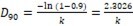 where, D is the exposure dose in J/m2, Et is the exposure time in seconds, and I is the irradiance in W/m2. If the irradiance is related to a dose that refers to 90% disinfection rate of the total population of the microorganism, the exposure dose is defined as D90. This disinfection rate dose can be calculated from the following equation 14: