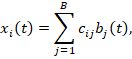 B-splines can be used to approximate m discrete time series (indexed by i=1,…...m) by means of the basis expansions