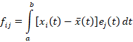 are the FPC scores. The FPC ej(t) are selected so as to maximize the variance of the m values