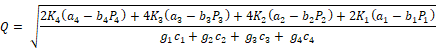 Now partially differentiating w.r.t Q1, Q2, Q3, Q4 and equating to zero,