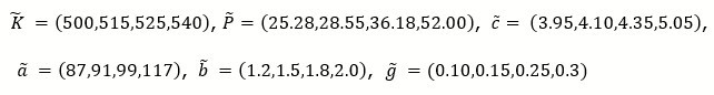 By using trapezoidal numbers, fuzzified input parameters are as follows