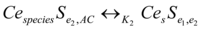 (Figure 6) shows the possibility of studying the role of ionic dissociation on the effect of surfactants in the emulsion carrier. Assuming that, in each range of Hy-1622 concentration, the cation surfactant and substrate can relate together and an equilibrium relation exists. The Hy-1622 concentration in which the equilibrium relation between the added cationic surfactant and the ions species existing in the solution, study the equilibrium between cationic-nonionic surfactants and complex produced from equilibrium surfactants and equilibrium equations (4,5). Cerium ion species in previously Figure 6 represent Ce(OH)4 or Cespecies in equilibrium step 1 and 2(e1,2) and S (A,C) anionic and cationic surfactants.