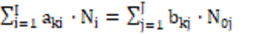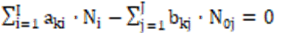 is obtained, where aki and bkj in equations 4-6 are the numbers of atoms/cores Yk (k = 1,...,K) in , and in the j-th component of the system, resp. The core is perceived as a non-transformable cluster of atoms, of the same elemental composition (expressed by chemical formula) and structure; e.g. the set of species: HSO4-1, SO4-2 and Fe SO4 contains SO4-2 as the core. One can notice that: (a) N1 involved with H2O as the species, (b) all N0i related to water as the component of the system, and (c) all ni = niW specified in f(H) and f(O) are cancelled within 2∙f(O) – f(H) in aqueous media. The necessity of prior knowledge of niW values in the balancing procedure is thus avoided. All these regularities are valid for non-redox and redox systems.