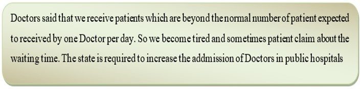 During the interview, medical doctor working in public hospital said that the patients wait the service much time and most of the time they get angry with the service. The Doctors explained in the following way: