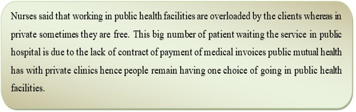 During the interview, Nurses working in public hospital said the similar to the doctors working together, they human resources intervention is required to satisfy the service needed by patients in public health facilities. The nurses explained in the following way: