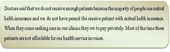 During the interview, medical doctor working in private hospital said that they have an obstacle of not working with mutual health insurance of ordinary people, they work with private insurers only and the civil servants health insurance. The Doctors explained in the following way:
