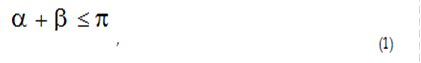 Checking the Delaunay condition is one of the most important operations performed when constructing a triangulation. In practice, several verification methods are used, for example, checking the sum of opposite angles. Its meaning is as follows (for simplicity, the case of two-dimensional triangulation is given (Figure 2) the Delaunay condition for a triangle (P1 (x1, y1), P2 (x2, y2), P3 (x3, y3)) will be satisfied if and only then, when for any other point Р0 (x0, y0) the triangulation will be: